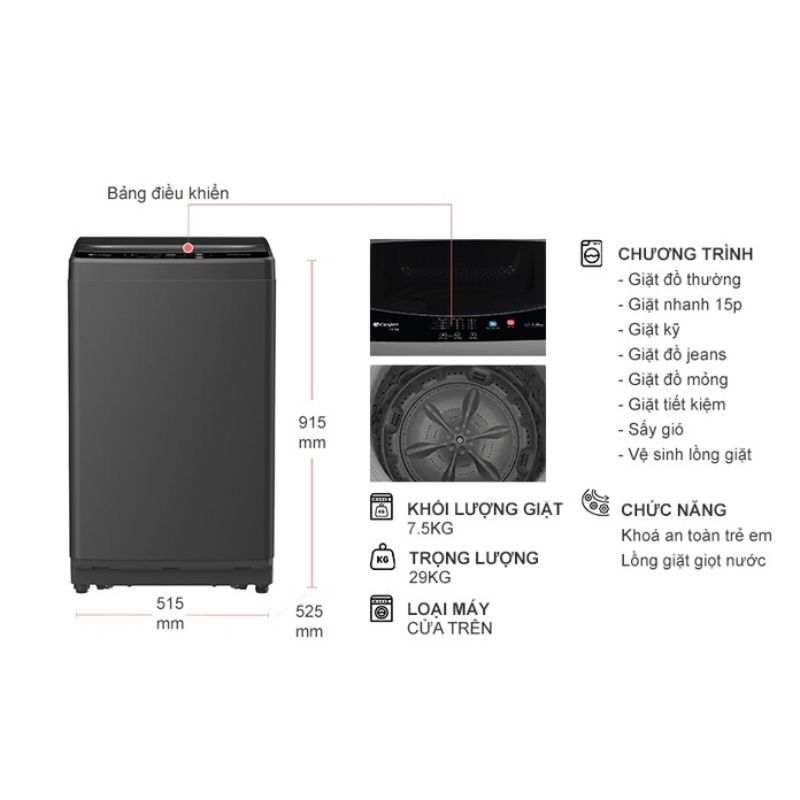 | Loại máy giặt | Cửa trên – Lồng đứng |